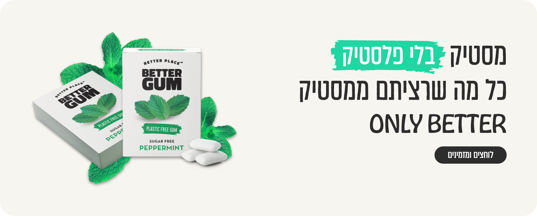 תנו לנו ללעוס לכם את התמצית: בעוד שבמרבית המסטיקים יש פלסטיק, BETTER GUM הוא מסטיק ללא פלסטיק, המגיע במארז קרטון, ללא עטיפת הניילון, וממותק ע"י קסילטול וממתיק מצמח הסטיביה.